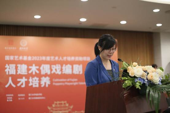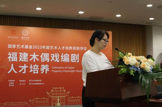李晓红介绍了厦门大学电影学院作为中国“双一流”高校第一所电影学院的基本情况,阐述了学院立足闽台文化交流与“一带一路”建设,积极推动中华文化的海外传播,切实关注传统民族艺术、非遗传承发展的总体战略。她表示,学院将竭尽全力支持该项目的开展,以深厚的学术积累、前沿的学术战略、完备的平台建设,为福建木偶戏编剧人才培养赋能,把握时代契机、应对人才危机、焕发偶戏生机,传承且发展好福建本土的珍贵剧种。