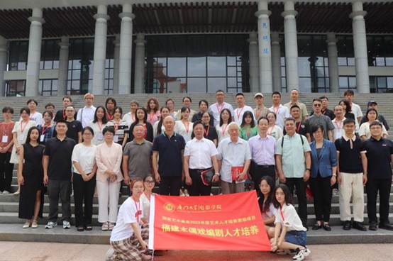 2023年9月16日上午,国家艺术基金2023年度艺术人才培养资助项目《福建木偶戏编剧人才培养》开班仪式在厦门大学科学艺术中心举行。国家艺术基金项目监督专家、福建省文联副主席、厦门市台湾艺术研究院院长曾学文,国家艺术基金项目监督专家、中国戏剧家协会、中国导演家协会会员黄天福,国家艺术基金项目监督专家、国家一级演员、中国文化馆协会小戏小品专业委员会委员魏小春,国家一级编剧、国际木偶联会中国中心副主席、中国木偶皮影艺术学会原副会长王景贤,福建省剧协木偶艺术专委会常务副主任、秘书长陈诗章,厦门大学社科处副处长黄含韵、电影学院党委书记林公明、电影学院副院长(主持工作)李晓红、电影学院教授陈世雄,项目负责人、厦门大学电影学院副教授王晓红等与来自全国经公开遴选的30名学员参加仪式。