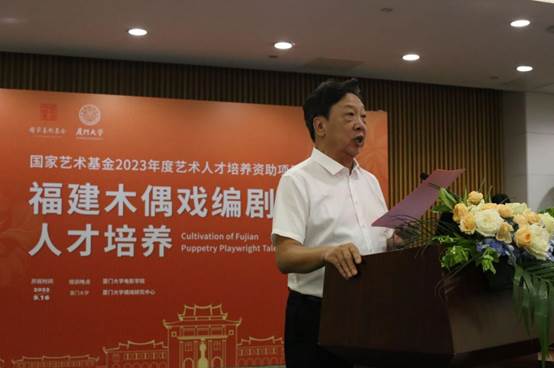 王景贤在致辞中表示,福建是闻名中外的木偶艺术重镇,木偶戏传承久远、积淀深厚。改革开放后,福建木偶戏走遍五大洲近百个国家和地区开展文化交流,传播优秀的中华文化,赢得了广泛的国际声誉,成为福建省对外文化交流的一张亮丽名片。他指出,任何事业的生存与发展,关键都在人。作为国家级乃至世界级的非物质文化遗产,福建木偶戏传承的关键在于后继人才的培养。然而,目前福建木偶戏发展面临导演、编剧、设计等主创人才缺乏的困境。他表示,培养创作人才对木偶戏剧种和剧团的建设和发展至关重要,项目顺利落地厦大是具有开创意义的第一步。