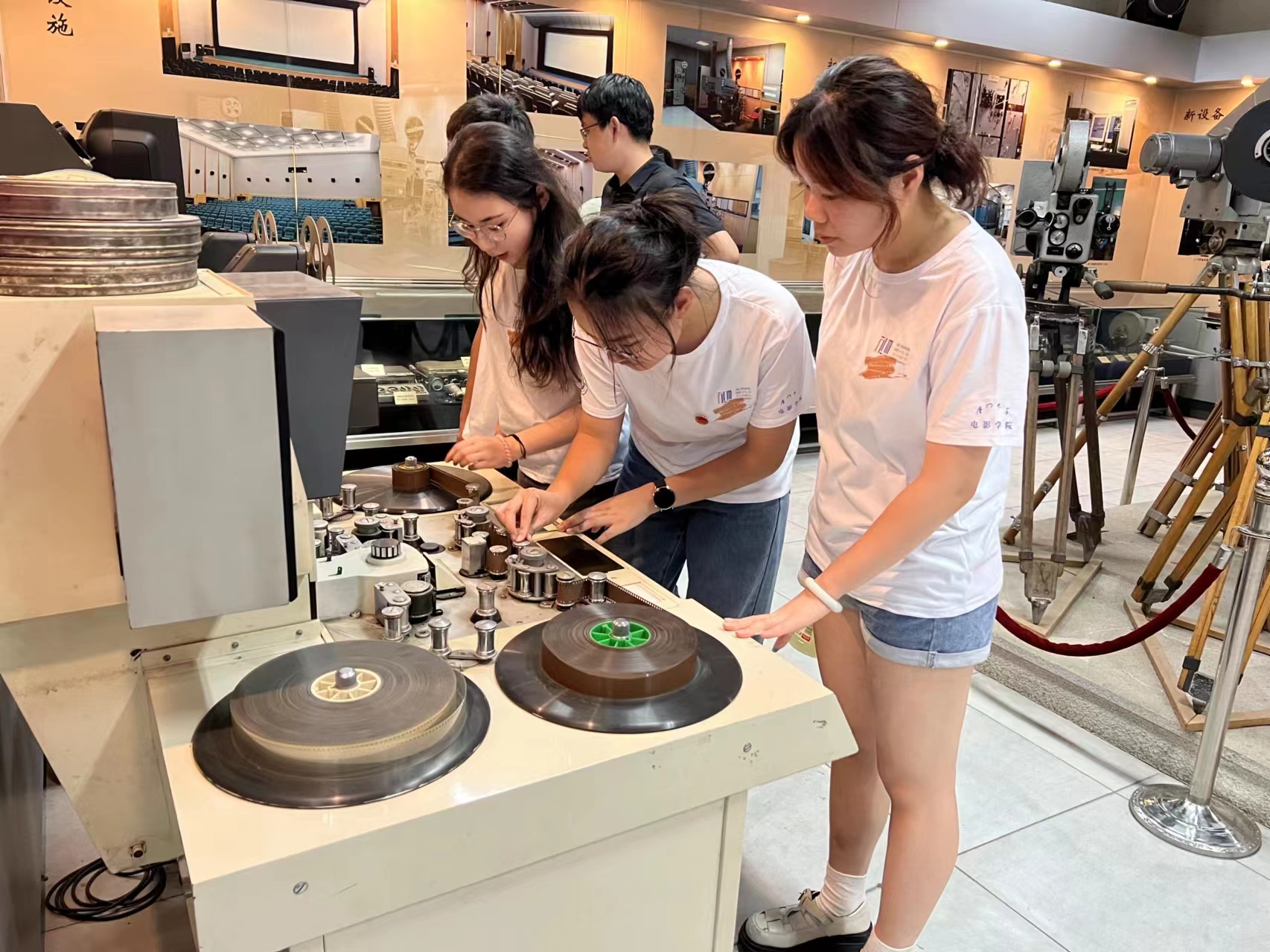 团队拥有丰厚的实践基础和修复成果,队员们的足迹遍布全国各地。先后拜访了福建广电、内蒙古电影博物馆、中国电影资料馆、八一电影制片厂、上海电影博物馆等众多机构。在内蒙古电影博物馆,队员们见到了很多稀缺的老物件,深刻感受到了老一辈电影爱好者们保护胶片的信念和情怀;参观中国电影资料馆时,队员们在7月的盛夏里穿着厚棉袄,进入胶片恒温储藏室参观;在上海电影博物馆,队员们见到了很多珍贵的导演手稿,直观地感受到了在技术落后的年代电影人是如何进行电影创作的。团队实践获得人民日报、新华社、光明网、中新网、国际在线、中国教育报、中国青年报、中国共青团杂志、福建日报等权威媒体报道。