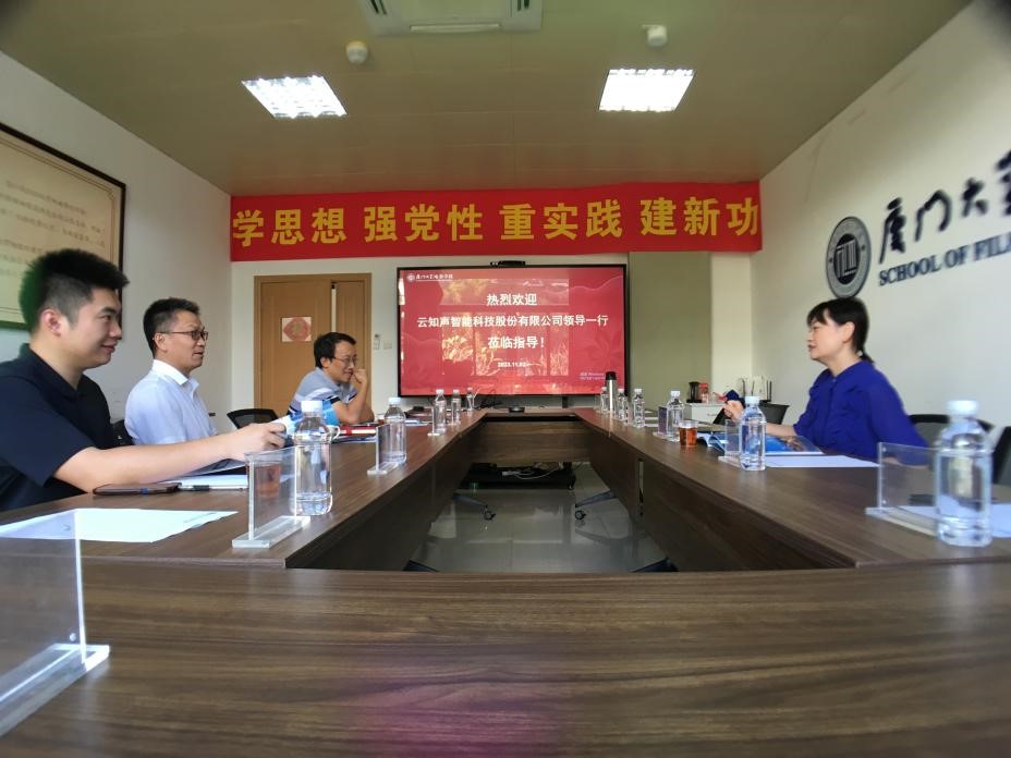 为深化校企合作、推动共赢发展,2023年11月2日,云知声智能科技股份有限公司代表陈鹭鹭莅临电影学院,双方在海韵行政楼C416开展交流座谈会,厦门大学电影学院副院长姚俊峰教授,数字媒体技术系主任刘昆宏教授、电影学院科研秘书李锦泽等参与本次会议。