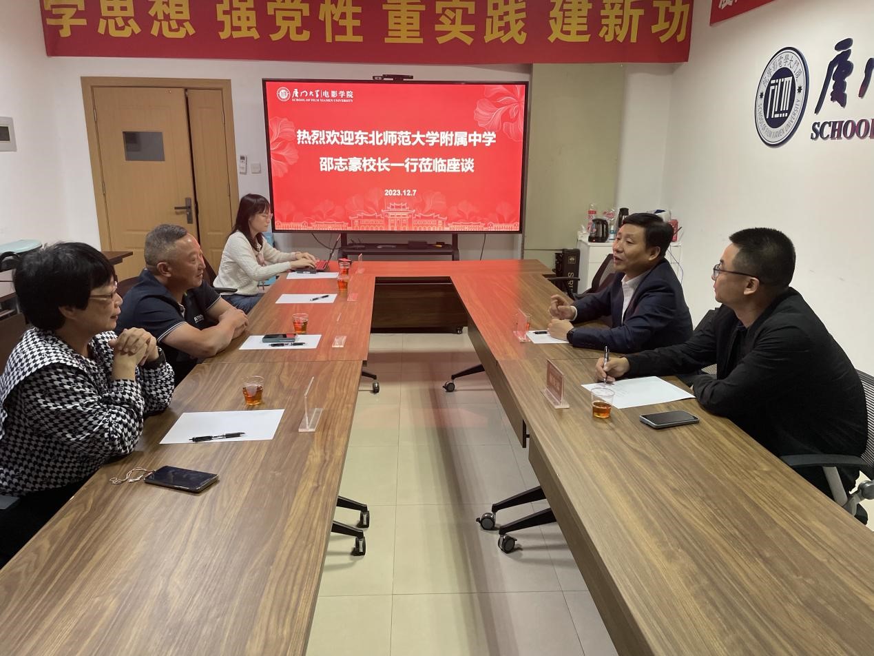 为进一步提升招生宣传工作质量,12月7日,东北师范大学附属中学校长邵志豪和研究室主任解庆福来校开展招生工作交流,双方共同研究招生宣传新策略,携手打破传统招生思维的束缚,致力于为学子提供更广阔、更具前瞻性的学术和职业发展选择。
