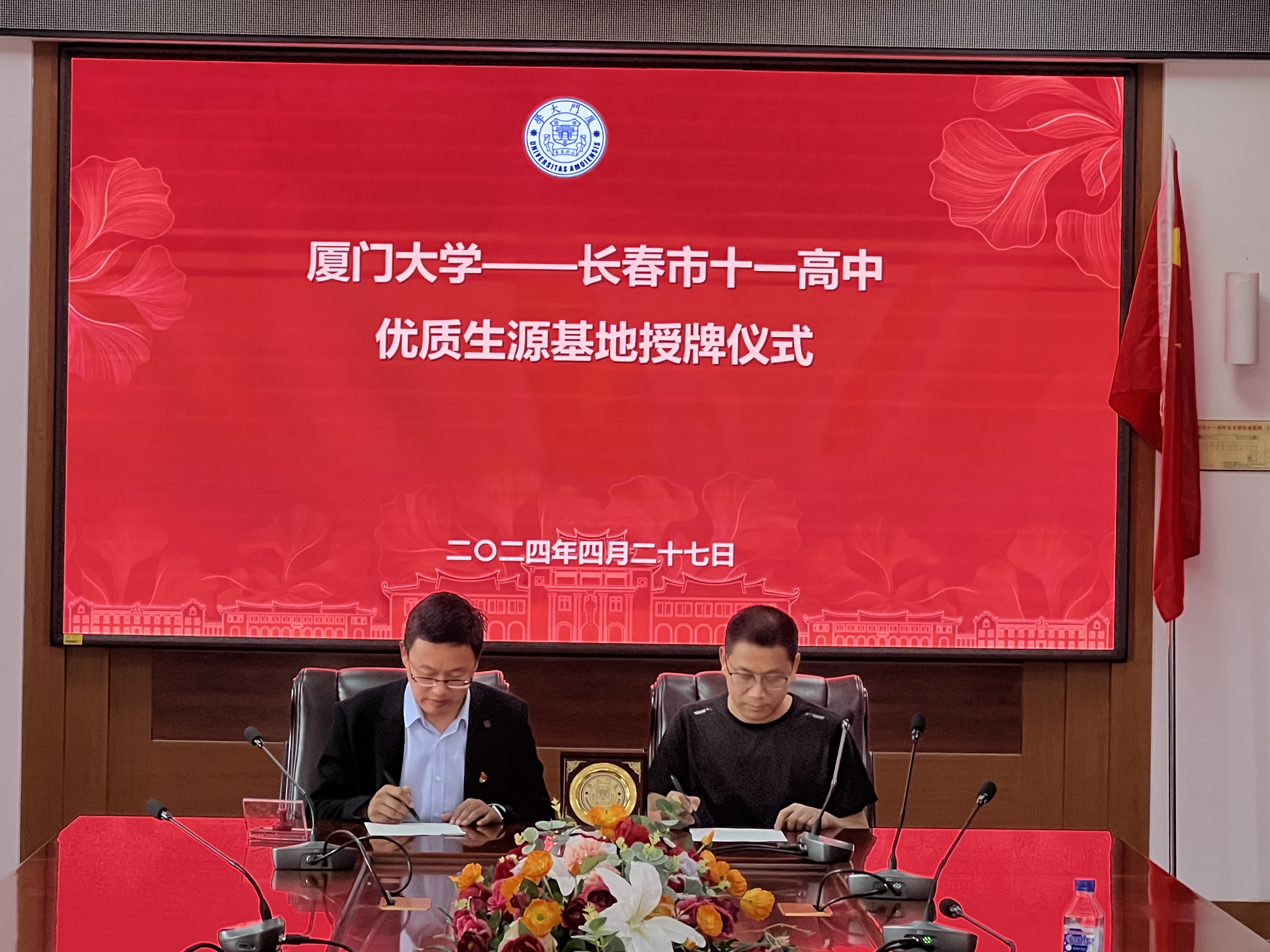27日,宣传组前往长春市十一高中授牌优质生源基地。长春市十一高中作为吉林省知名高中之一,其教育质量和教学水平一直备受赞誉,本次授牌不仅进一步加强了厦大与长春市十一高中的合作关系,也为顺利开展下一步招生宣传工作打下了坚实的基础。相信在双方的共同努力下,未来将有更多优秀的学子报考厦大。