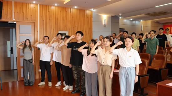 为号召全体党员牢记自身责任,做党章党规党纪的忠实践行者和维护者,大会组织师生党员重温入党誓词,2024年电影学院新发展党员上台领誓,全体党员举起右拳、置于耳边、洪亮宣誓,入党积极分子行注目礼。