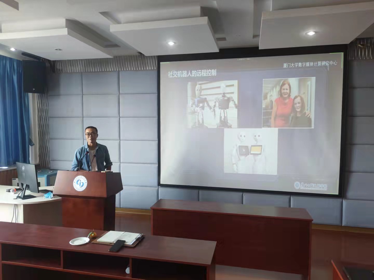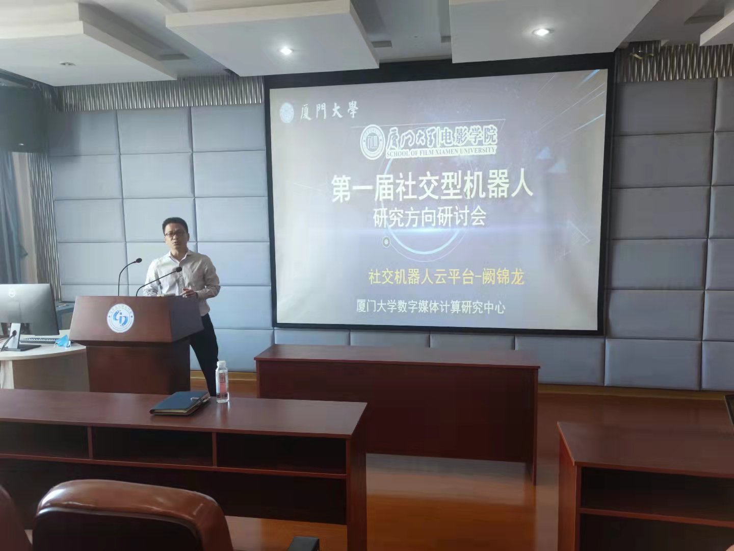 2021年10月31日,厦门大学电影学院第一届社交型机器人研究方向研讨会成功举办。本次研讨会在厦门大学海韵园科研一号楼310报告厅举行,由电影学院姚俊峰副院长主持。参与研讨会的人员包括厦门大学电影学院、信息学院、经济学院的老师、学生,还有来自集美大学、闽南师范大学和泉州装备制造研究所的相关学者。研讨会采用线上线下相结合的方式进行,现场有近40位师生,线上有近30位师生,气氛热烈!