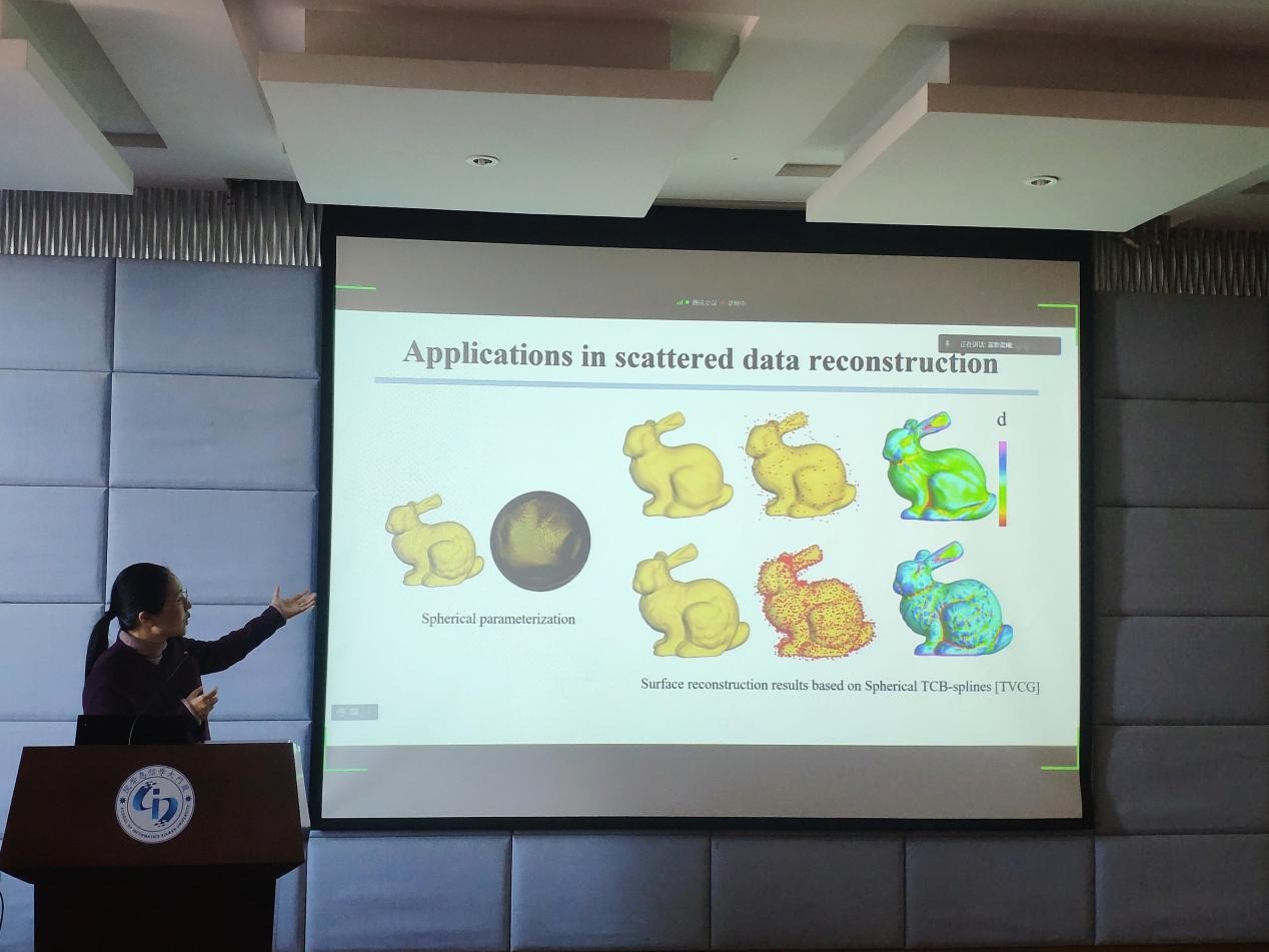 现场的多位老师从不同方向切入,对相关研究工作进行了介绍:信息学院苏劲松教授以代码生成为例,将小组目前研究的文本生成技术娓娓道来。安徽大学互联网学院陈鹏教授于线上为师生做了基于HoloLens增强现实的线缆识别的相关报告,并展示了线缆装配识别的演示视频。信息学院江敏教授主要介绍了在线学习解决动态多目标优化问题,该方法应用到钢铁等多个工业应用场景中已取得了很好的节能效果。数学科学学院曹娟副教授介绍了在三角形构型上的B-Splines,同时展开介绍多个应用场景。信息学院张志宏副教授深耕图理论研究,对近期取得的成果及其应用作了相关报告。随后,人工智能研究院博士生简忠权和信息学院博士生林光毅分别介绍了电影剧本自动生成算法以及基于实数编码的输出纠错编码算法。