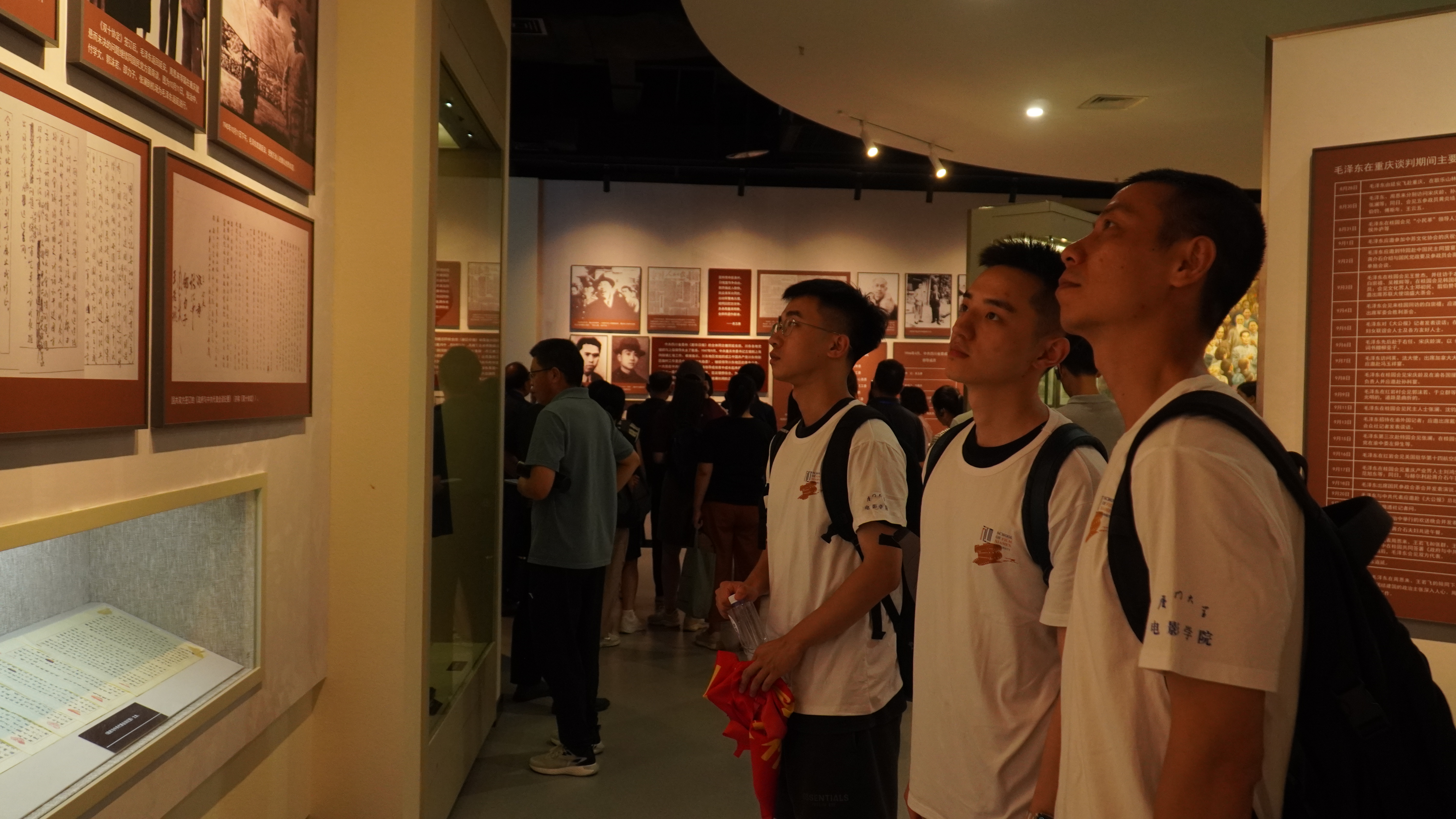 23日上午,调研团来到重庆大学美视电影学院考察。23日下午,调研团一行走进三峡博物馆,参观学习《抗战岁月》展览、《重庆大轰炸》半景画、《重庆大隧道惨案》复原场景,三位一体共同构成了一幅伟大的历史画卷。在这场英勇不屈的反侵略战争中,重庆成为中国的战时首都、中共中央南方局所在地和抗日民族统一战线的重要政治舞台、世界反法西斯战争中国战区统帅部所在地,为抗日战争和世界反法西斯战争的胜利作出了巨大的历史贡献。