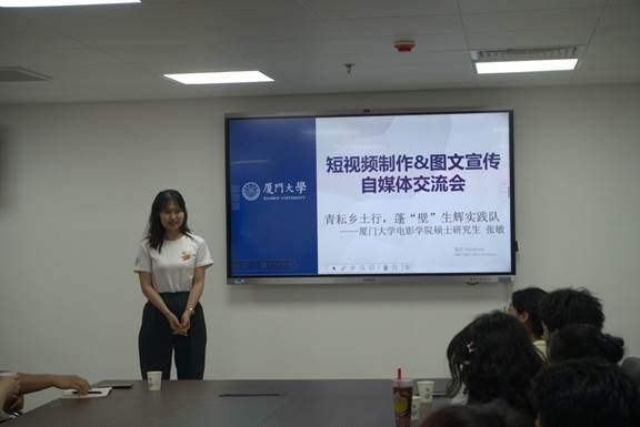 行程至终,厦门大学电影学院发挥学科特长,结合当下时兴短视频传播方式,助力光泽农产品宣发和文旅事业。电影学院硕士研究生、实践队负责人张敏为团属社工机构负责网络宣传工作人员、文化传媒行业相关工作人员展开自媒体内容制作培训交流会。
