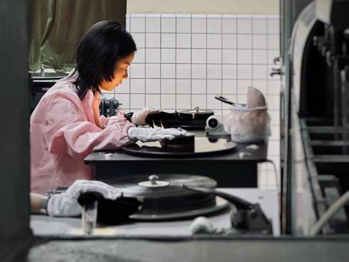 29日上午,实践队在长春长影旧址博物馆文化传播有限公司副总经理王冬的引导下考察中国红色电影修复工艺,参观中国现存最早、最完整的电影洗印工业遗址——长影旧址博物馆洗印车间,由此了解、体验胶片电影物理修复技术。长影洗印车间建于1937年,1939年正式投入使用,是中国现存年代最久远的洗印车间。该车间的洗片大厅生产线是中国唯一一条对外开放的电影洗印生产线,集中展现了电影胶片从冲洗底片到印制拷贝的生产过程。实践队近距离了解胶片电影洗印生产的技术工艺,学习硝酸、醋酸、涤纶等不同材质胶片进行物理清洁与修复的工艺差别,并在平面倒片台剪接、修复电影胶片。