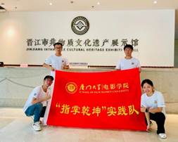 近日,厦门大学电影学院“指掌乾坤”实践队在数字媒体技术系副主任佘莹莹副教授的带领下,先后来到福建晋江福州、北京展开“铸牢中华民族共同体意识·百校同心八闽行”与青年红色筑梦之旅实践。此次活动旨在贯彻落实习近平文化思想,调研福建非遗文化传承保护现状,促进海峡两岸融合发展,探索“非遗+科技”文化传承形式道路,更好地保护非遗、传承非遗、发展非遗。