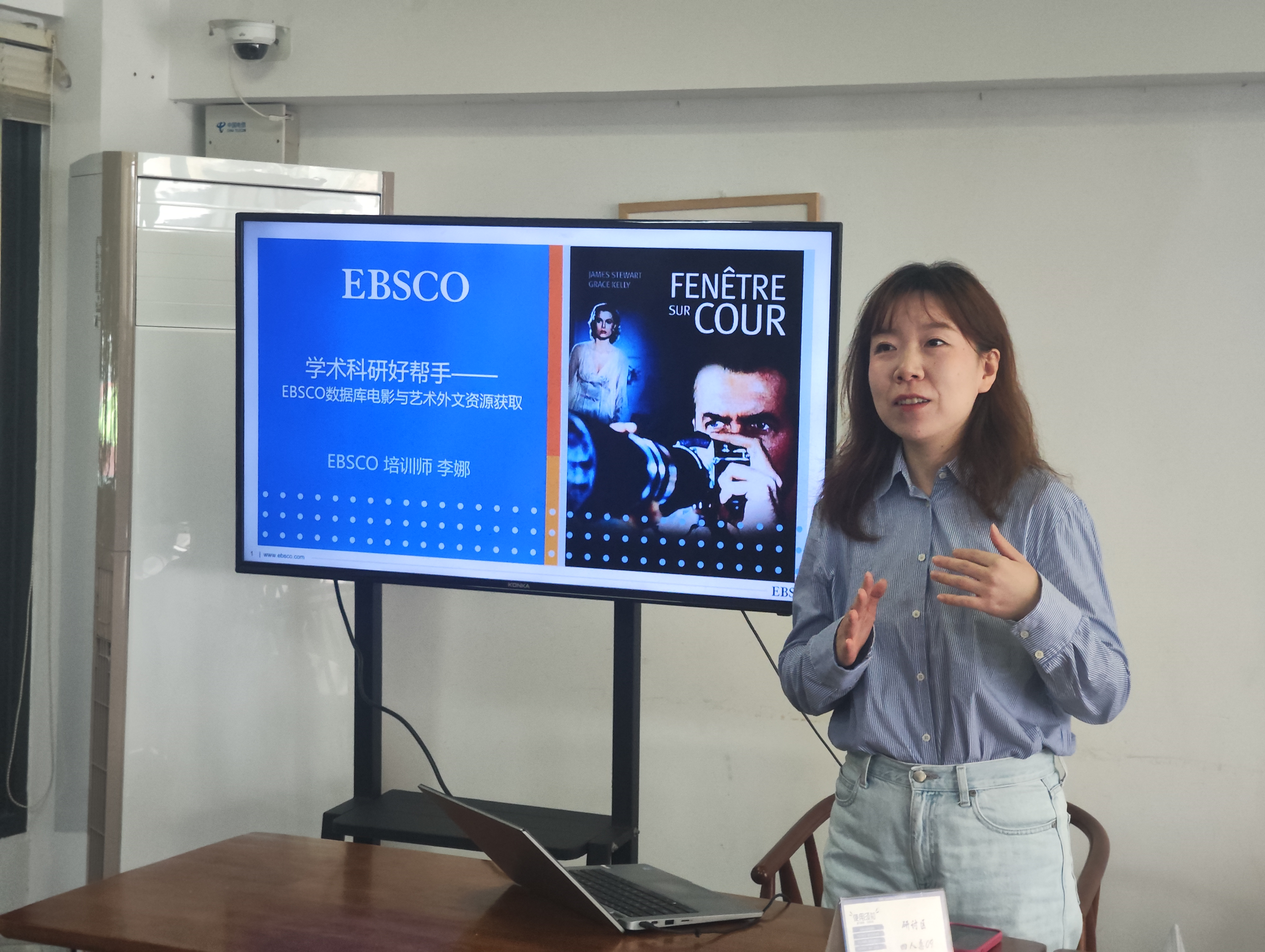 2024年10月24日,在思明校区学生公寓海韵9学习共享“一站式”空间研讨区内,一场别开生面的学术科研资源培训讲座吸引了众多师生的关注。讲座主题为“学术科研好帮手——EBSCO数据库电影与艺术外文资源获取”,由电影学院和图书馆联合主办,特邀EBSCO信息服务公司高级培训经理李娜担任主讲嘉宾。图书馆学科馆员陈萌宜,电影学院工程师陈思媛、张延坤,电影学院研究生秘书兼科研秘书李锦泽,历史与文化遗产学院博士后汪湛穹等参加活动。