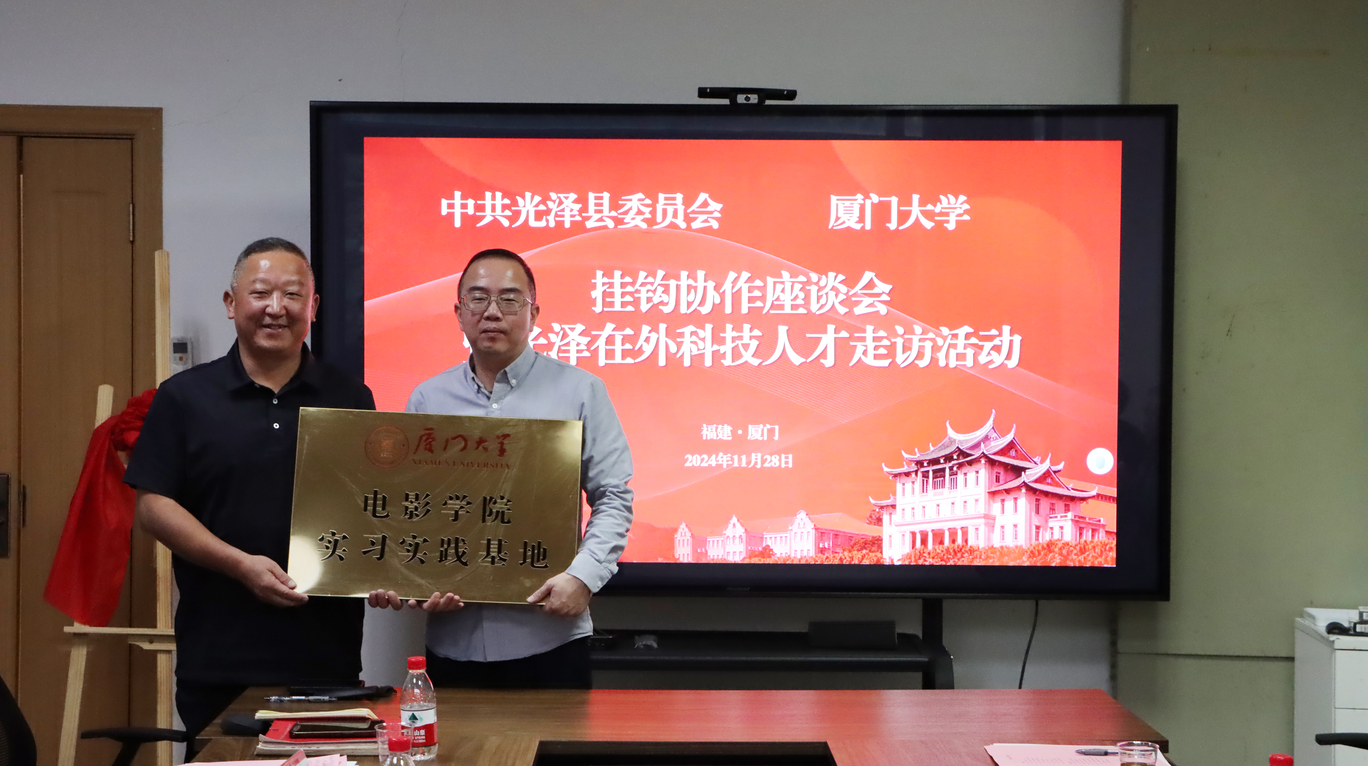 11月28日下午,光泽县委副书记黄河带队到厦门大学电影学院对接挂钩帮扶工作,并走访光泽在外科技人才。校党委常委、副校长邓朝晖出席会议,会议由电影学院党委副书记张晴主持。