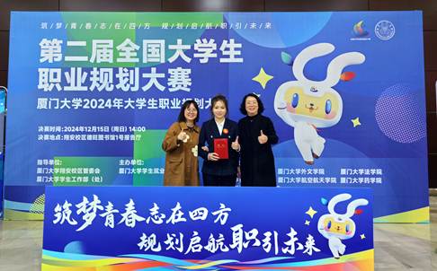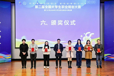 12月15日,“第二届全国大学生职业规划大赛厦门大学校赛-厦门大学2024年大学生职业规划大赛”在翔安校区德旺图书馆1号报告厅圆满落幕。学校于今年10月启动大赛校赛,全校本硕博9500余名学生报名参赛。经过初赛、复赛和决赛的激烈角逐,我院2023级本科生安臻颖同学以第二名的优异成绩荣获大赛成长赛道二等奖。学院团委书记吴维、党政辅导员于洪泽获评“优秀指导老师”。第一批厦门大学“就业引航名师计划”立项导师、电影学院工程师陈思媛参加活动。