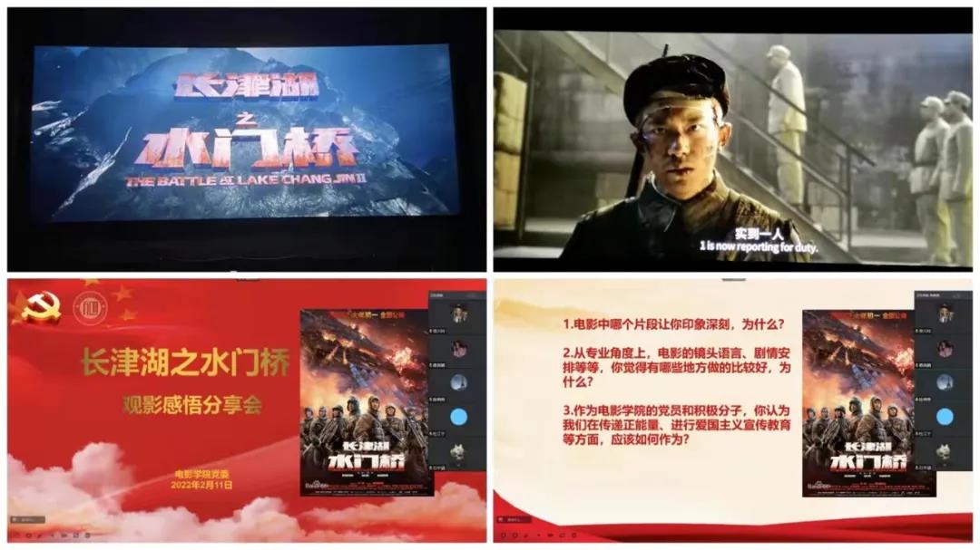 作为电影学院的同学,在假期观看热门电影也不忘有所观、有所学、有所思。学院组织留校师生党员和入党积极分子观看了爱国题材电影《长津湖之水门桥》,并组织了线上的分享会。在陈俐燕老师的带领下,同学们回味了第三次炸桥的重大牺牲、最后伍万里报告人数等经典的场景,共同感叹志愿军战士们钢铁般的意志和为祖国人民奋不顾身、敢于牺牲的深沉的爱国情怀;陈老师和同学们也共同交流了电影的叙事风格、视觉特效、角色塑造等方面的优点,比如微观视角的聚焦,短镜头的运用,特效的逼真,角色的真实立体。陈老师将这部新鲜的点映当做案例教学,强调电影创作要注重贴近生活,真实鲜活,并且对同学们做出殷殷嘱托,希望同学们能够利用专业知识,发挥学科优势,在电影创作上努力向世界一流水平看齐,提高国家的文化软实力。听了陈老师的分享,党员和积极分子们也不忘见贤思齐,思考起了自己作为电影人和党员,用优秀电影宣传爱国情怀,传承优秀文化,坚定文化自信的使命。
