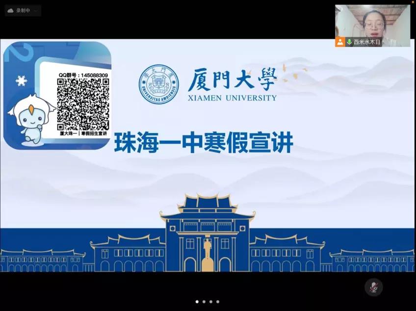 还有一些同学则是在返乡期间回到高中,开展招生宣讲,为学校与学院架起宣传的桥梁。厦大珠一招生宣讲队就在春节临近之际,通过线上会议对珠海一中的学生、家长进行了招生宣讲。经过前期充分的宣传准备,参会人数众多。宣讲会上,同学们充分介绍了厦门大学的概况,使学生家长对厦大学科实力、师资力量有初步了解。随后解读了招生录取情况,最后,他们和学弟学妹们交流了学习经验,并邀请他们填写心愿卡。写下关于厦大的理想,待今年六月放榜,学校会给圆梦的同学寄出礼物。同学们的热情并没有因为屏幕阻隔而消退,在电子卡片上留下了自己最真诚和坚定的心愿。希望播撒下的希望能够开花结果,在明年盛夏的厦园里见到更多灿烂的笑脸。