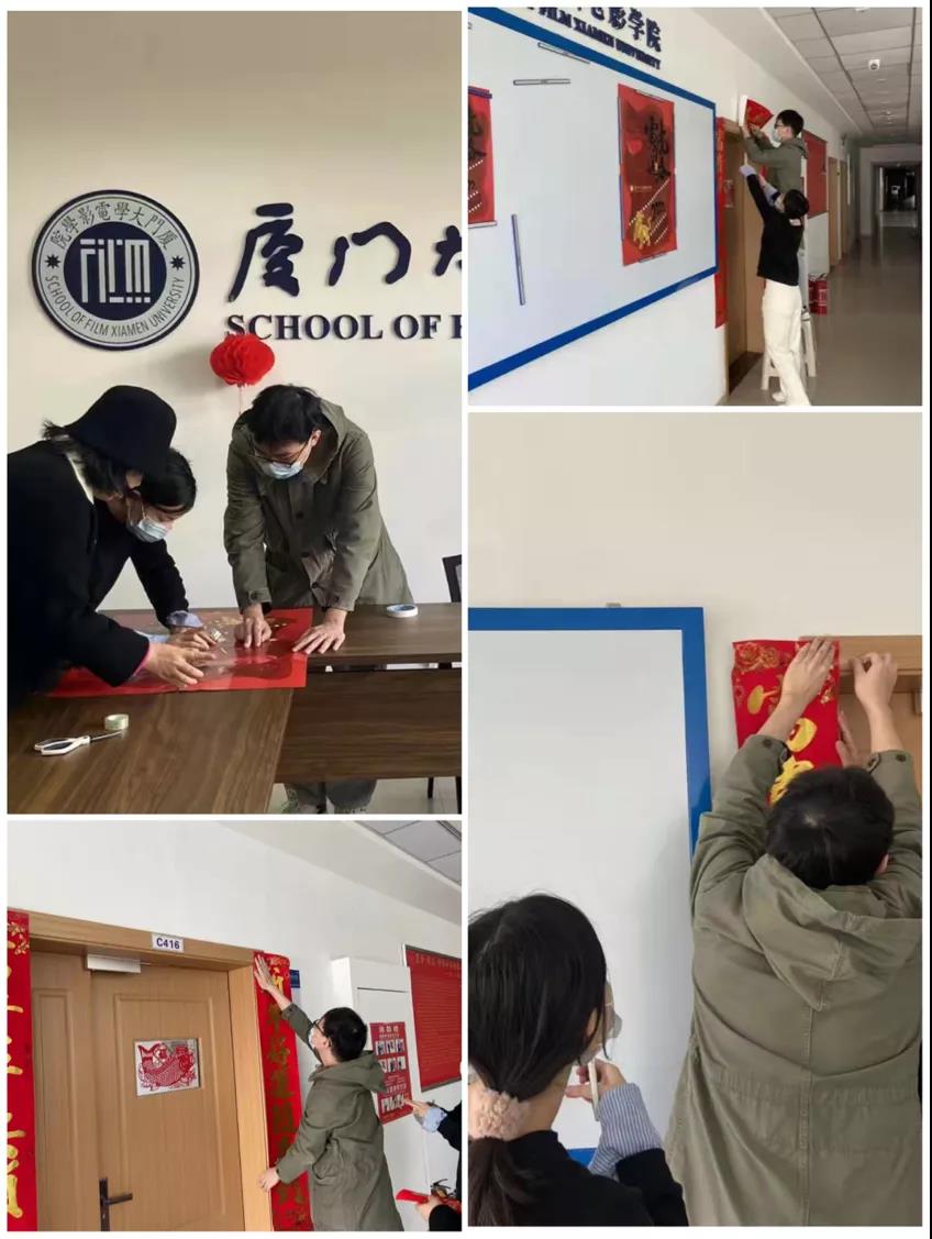 春节期间,学院也少不了喜气洋洋的氛围。留校学子纷纷帮忙布置院部,张贴海报与对联,挂上喜庆的灯笼装饰,为院部带来鲜艳的虎年红,祝学院在新的一年再创佳绩。