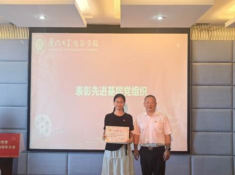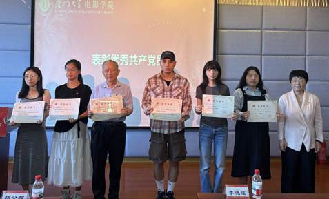 电影学院党委书记林公明、常务副院长李晓红共同为受表彰对象颁发荣誉证书并合影留念。
