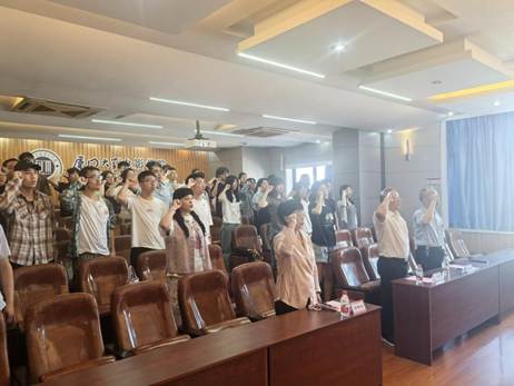 最后,全体与会党员在高斌副书记的领誓下,面对党旗,重温入党誓词。“我志愿加入中国共产党……”铿锵誓言响彻会场,激励着每一位党员铭记承诺,将誓言融入日常工作与学习,做到“一句誓言、一生作答”。