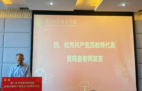 随后,优秀共产党员教师代表、关工委常务副主任黄鸣奋教授结合自身经历,分享了在教书育人、党务工作中的心得感悟,表达了对党的教育事业和学院发展的深厚情感。他勉励师生党员坚守初心,勇担使命,为学院发展和中国电影事业贡献力量。