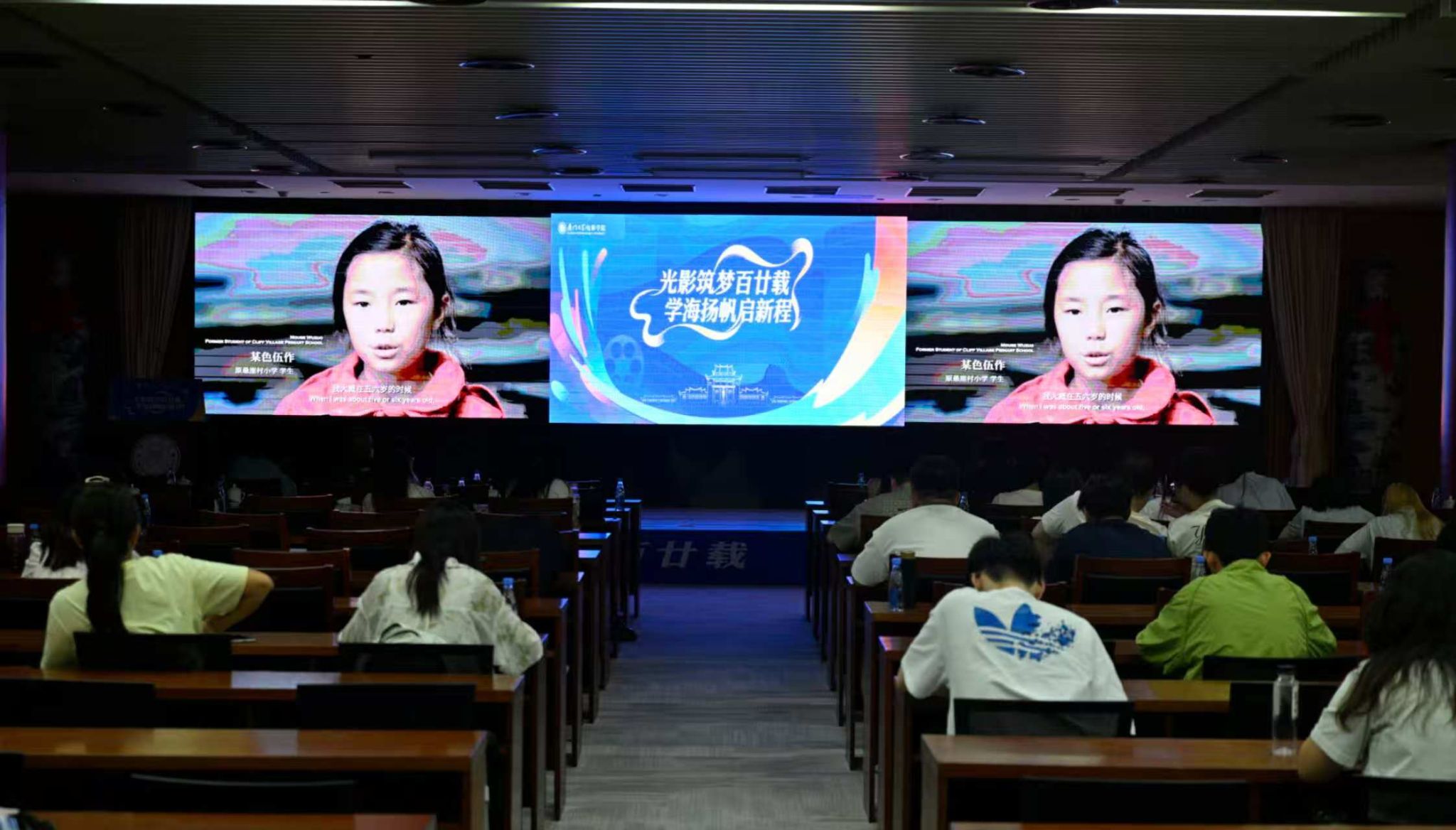 他向新生讲述了由电影学院参与拍摄制作的教育纪录片《桃李无言》。《桃李无言》是聚焦教育扶贫的纪录电影,承载着厦门市、厦门大学服务国家战略、传递教育温度的责任,也凝聚着全院师生的智慧与情怀。“《桃李无言》没有炫目的特效,没有刻意的煽情,用最真实的故事,最朴素的镜头,记录了普通人在时代浪潮中拼搏向上的力量”,他指出,“影视创作不仅是艺术追求,更是社会责任”。