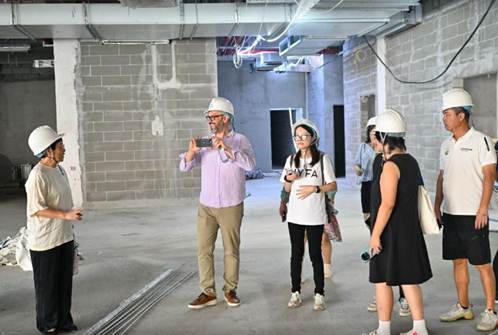 6日下午,在厦门大学电影学院常务副院长李晓红、助理教授许昳婷等的陪同下,朱宇华、卡尔德隆等来到大楼建设工地,厦门大学海韵园二期电影学院大楼建设项目负责人、校基建处、校建筑设计院等向来宾介绍了大楼装修进展。大楼将于2026年上半年陆续开放并投入使用,建设有摄影棚、放映厅、预混终混棚、录音棚、黑匣子多功能厅、调音调色实验室等影视专业教学空间,以产业导向提供实践场景,为该项目的人才培养和创作实践提供了较好的硬件需求。考察过程中,双方围绕场所的功能规划、使用机制展开深度交流,直接对接该项目的教学管理需求,为两校在课程设置、学生实践模式、师资调配等铺展了清晰的合作图景,从硬件适配、教学协同、资源共享方面为合作办学项目的落地与优化提供关键依据。