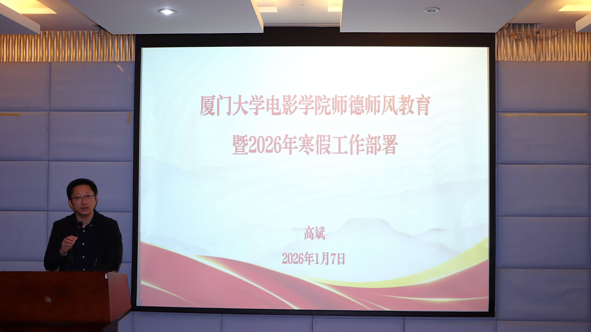 1月7日,厦门大学电影学院2025年度教职工大会在海韵园科研一310举行。电影学院党委书记高斌、院长黄建新,常务副院长谢晓晶、李晓红,副院长蒲剑等学院领导班子成员出席大会,学院全体专任教师、党政管理人员、工程技术人员参会,会议由高斌主持。