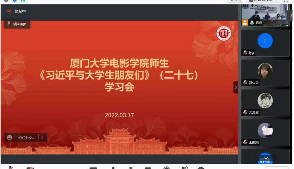 3月17日,电影学院召开线上理论学习会,学院党委副书记张晴带领全体学生学习《<习近平与大学生朋友们>(二十七)》:《习市长指导我“要把马克思主义原著‘厚的读薄,薄的读厚’”》一文,感受习近平总书记对青年学子的深切关怀和深情厚望,学工组全体成员参加学习。