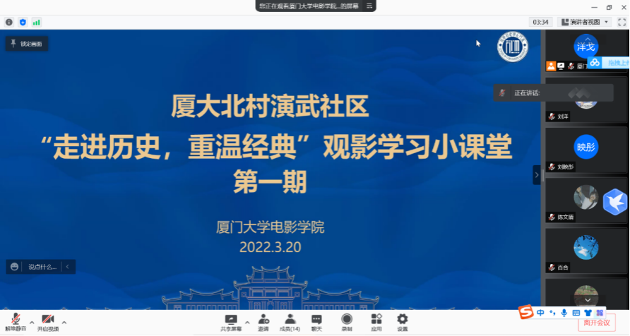 为丰富疫情期间的文化生活,充分发挥电影在弘扬传统文化、讲好中国故事方面的优势,培养青少年的电影鉴赏能力,让青年学子在实践中锻炼提升专业能力,厦门大学电影学院团委联合厦大北村演武社区举办“青影说”社区小课堂志愿服务活动,由志愿者向社区小朋友们普及电影知识、组织鉴赏经典影片。