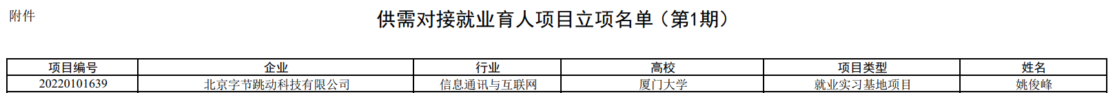 近日,教育部高校学生司公布第一期供需对接就业育人项目立项名单,我院与北京字节跳动科技有限公司的供需对接就业育人项目获批入选。