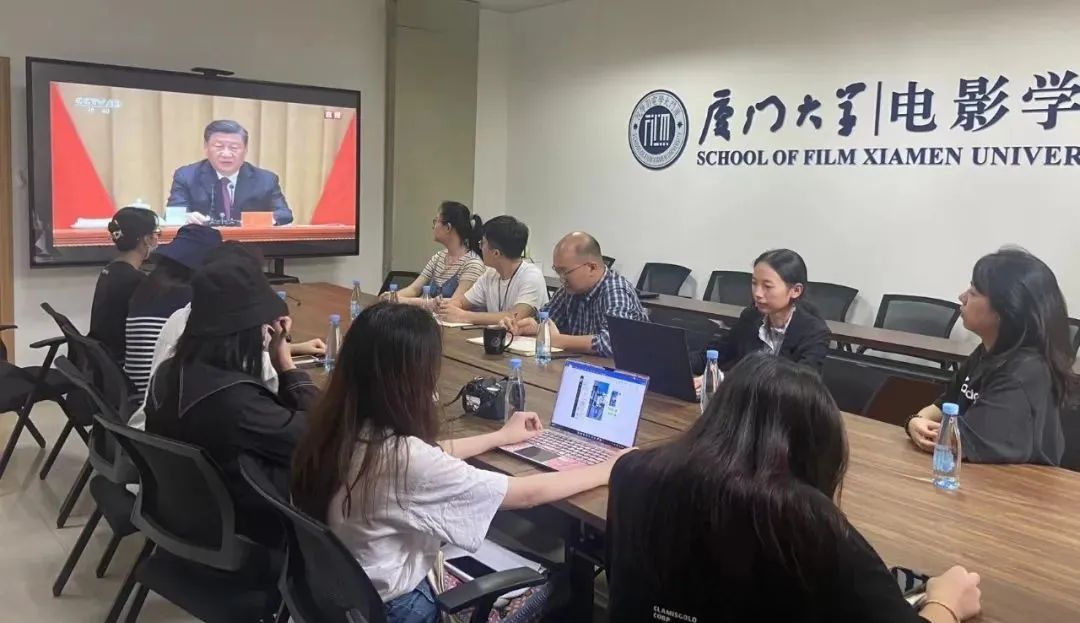 观看大会直播后,电影学院党委副书记张晴带领师生进行政治理论学习。他从五四运动的历史成果说起,认为中国共产党的组织根基始终根植于青年,重视青年、关怀青年、信任青年。他回顾了中国青年运动的光辉历程、中国青年运动的精神风貌、百年中国青年运动的启示,表明在党的领导下,我国一代代青年在革命、建设、改革中永久奋斗,谱写了一曲曲壮丽的青春之歌。共青团是党的忠实助手和可靠后备军,与党同心、跟党奋斗,团结带领广大团员青年把忠诚书写在党和人民事业中,把青春播撒在民族复兴的征程上,在新民主主义革命时期、社会主义革命和建设时期、改革开放和社会主义现代化建设新时期、中国特色社会主义新时代均发挥了先锋力量、做出了突出贡献。