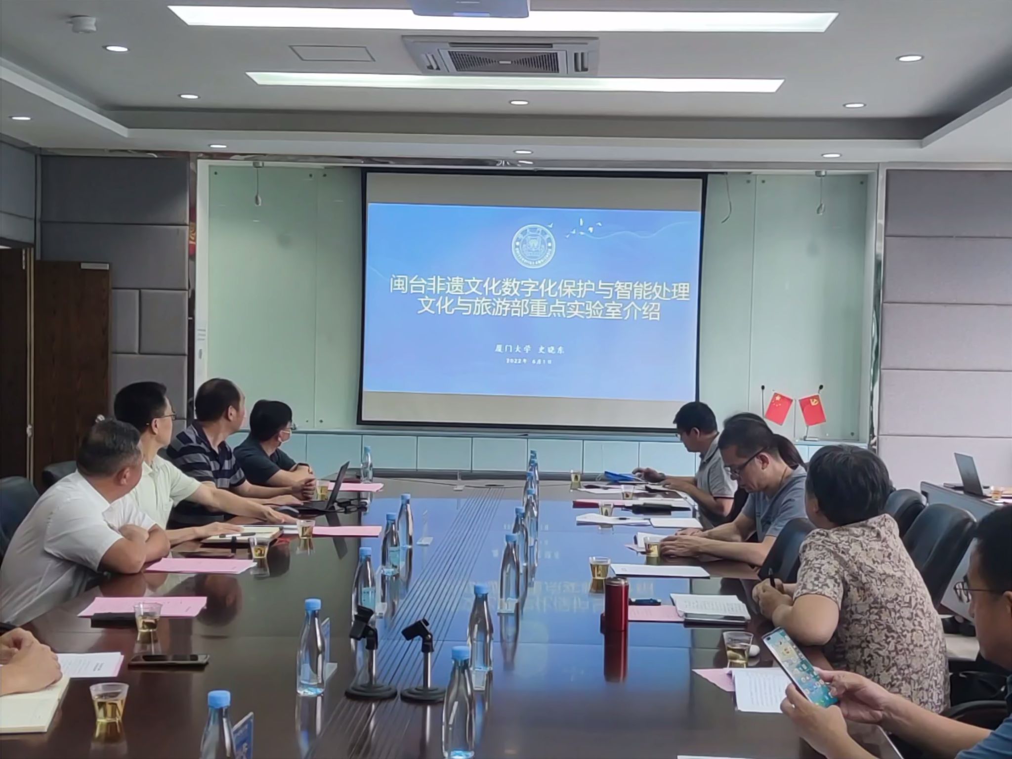 最后,与会人员参观了闽台非遗文化数字化保护与智能处理文化和旅游部重点实验室,就未来进一步合作进行研讨交流。