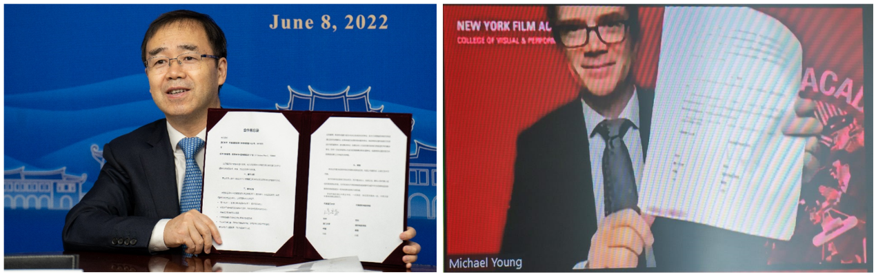 随后,张宗益、Michael Young代表两校签署《厦门大学与纽约电影学院合作备忘录》。根据协议要求,两校将继续拓宽友好交流渠道,在学术研究协作、师生交流交换、教学和社会服务等方面开展深入合作,进一步推动双方在电影领域的学科建设和人才培养。