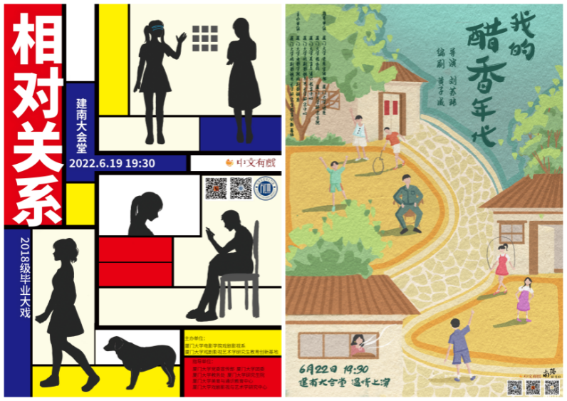 2022年中文有戏演出季,是厦门大学第十三届演出季,也是电影学院成立后的第一届演出季。不同于以往话剧、电影、相声曲艺三大版块集结演出的方式,本届中文有戏演出季以话剧展演为主,由电影学院副教授王晓红、助理教授许昳婷指导,重新整合、再度出发,推出了两部原创作品——电影学院戏剧影视系2018级毕业大戏《相对关系》、由电影学院指导的南强话剧社《我的醋香年代》,演出反响热烈。