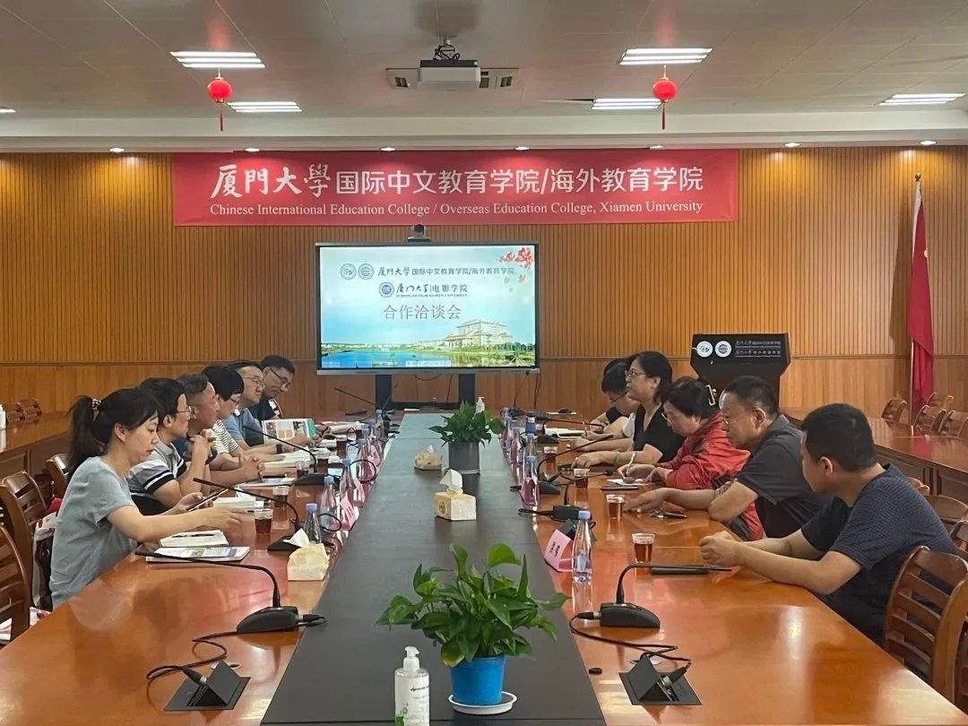 9月5日上午,厦门大学电影学院党委书记林公明、副院长李晓红、党委副书记张晴一行赴翔安校区,与国际中文教育学院/海外教育学院党委书记范丽、院长陈志伟、副院长耿虎、党委副书记林明华就院际合作事宜进行洽谈。双方就具体合作领域、模式和近期重点工作展开交流,为今后两院更深入合作奠定了坚实基础、开启了新局面。