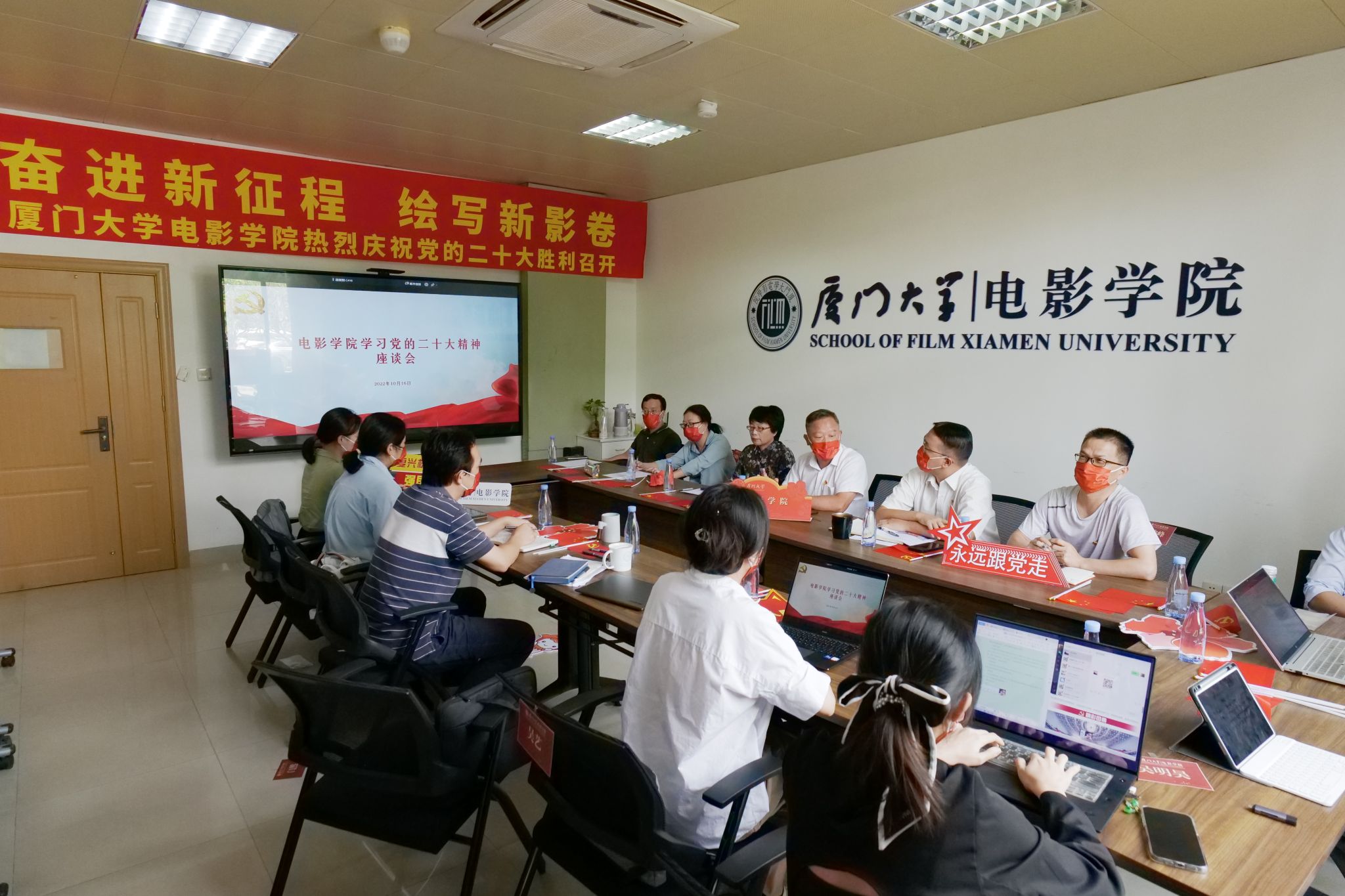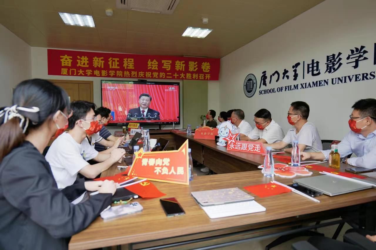 2022年10月16日上午,中国共产党第二十次全国代表大会在人民大会堂隆重开幕,习近平代表第十九届中央委员会向大会作报告。厦门大学电影学院组织师生代表在学院会议室、学生社区“一站式”空间集中收看党的二十大开幕会盛况,其他师生也以多种方式认真收看。