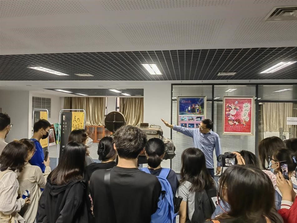 甫一入馆,厦门大学电影博物馆馆长、音像文献中心主任、电影学院戏剧影视系副主任张艾弓副教授就娓娓道来博物馆从2014年诞生至今的8年发展历程,并在兼具知识性与趣味性的讲解中带领同学们一一参观胶片放映机、胶片拷贝、电影档案等珍贵馆藏,领略博物馆留驻的光影历史。同学们表现出浓厚的兴趣,时而观察、时而提问、时而操作,不时驻足留影,课程时光如历史般在不经意间流淌。