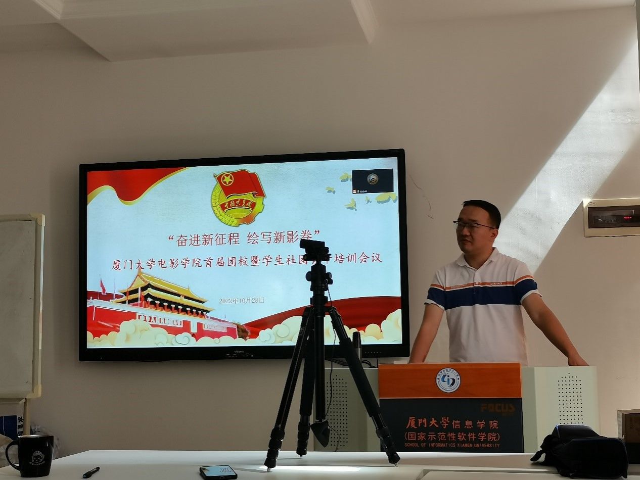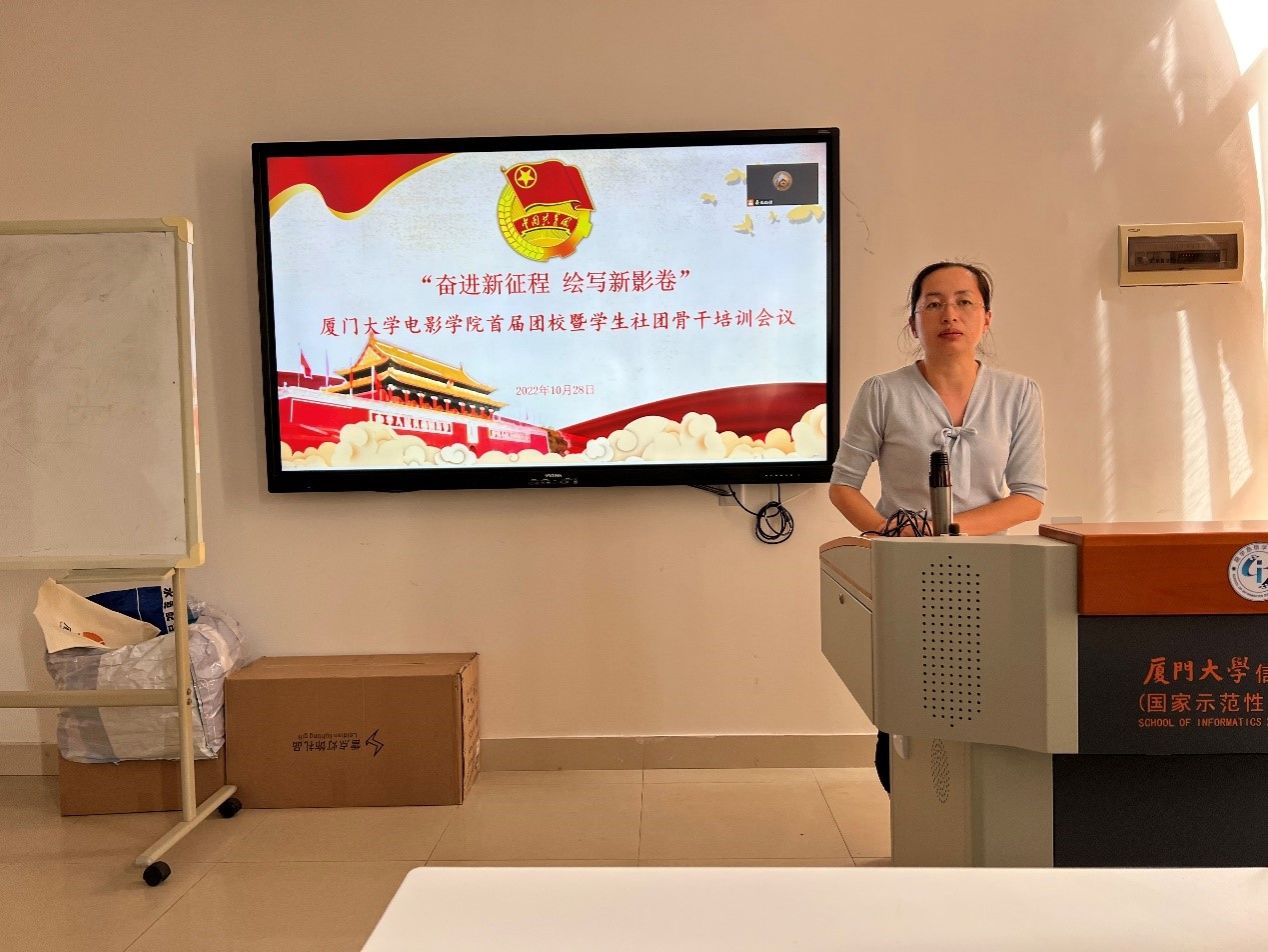 10月28日,电影学院首届团校之学生社团骨干培训于海韵园行政楼C414会议室举办。院党委副书记张晴出席授课、团委书记郑娟主持培训,由学院指导的各学生社团负责人、指导教师参加。
