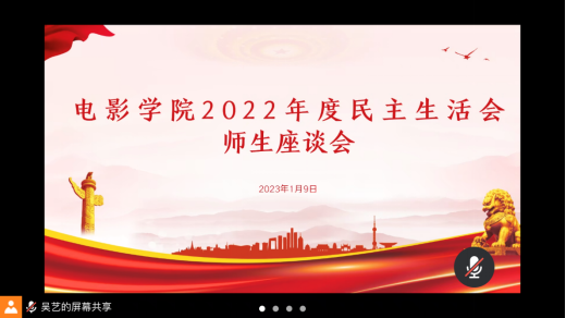 2023年1月9日,电影学院党委召开民主生活会征求意见座谈会暨理论学习中心组学习会。院党委书记林公明主持会议,院班子成员、党委委员、师生党支部书记、工青妇负责人、党政管理人员、学生代表等参加会议。
