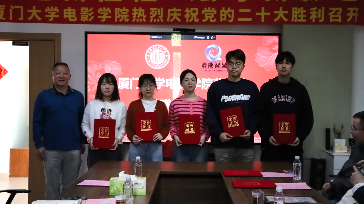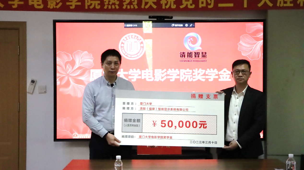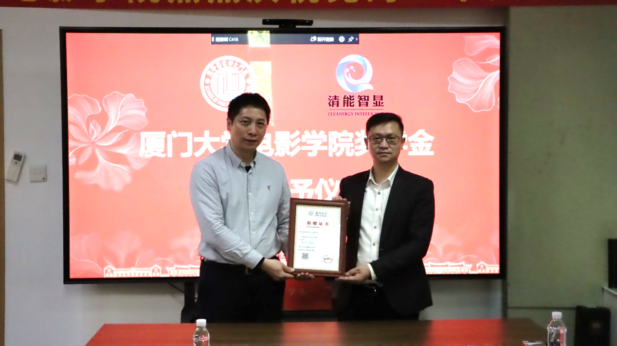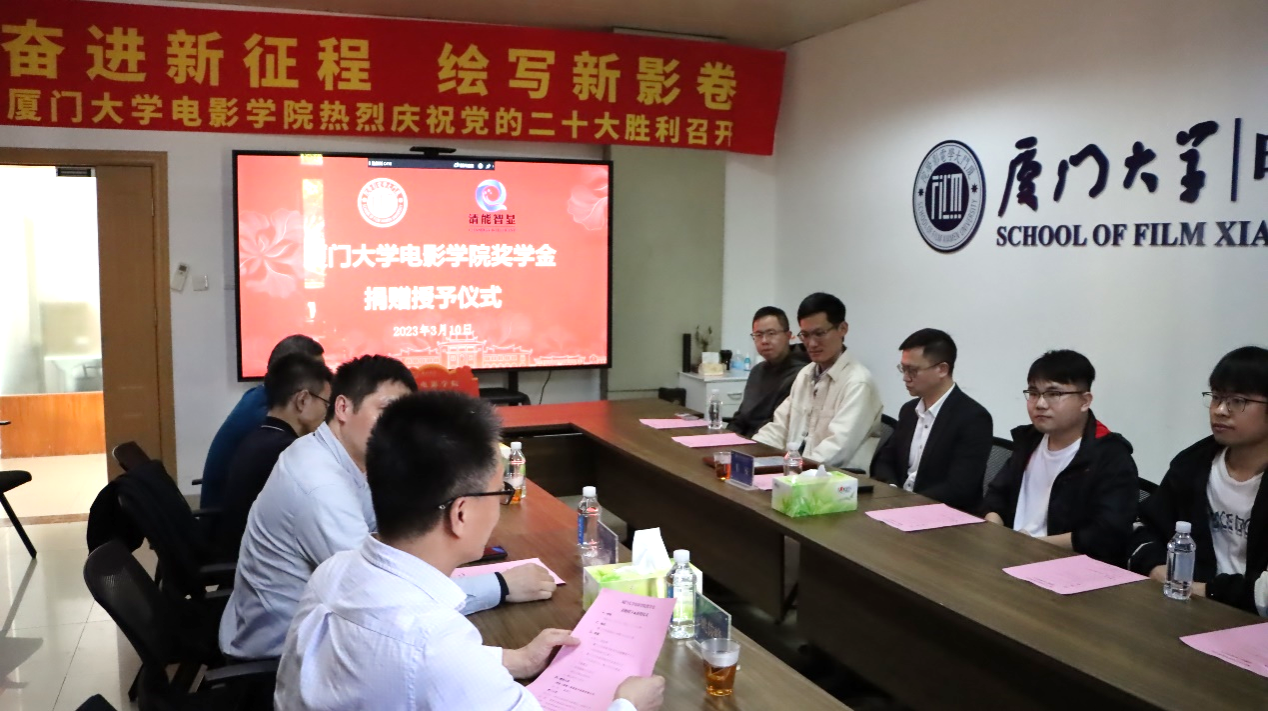 3月10日下午,电影学院在海韵行政楼C416会议室举行奖学金捐赠颁发仪式。清能(福建)智能显示系统有限公司董事长韦安,厦门大学研究生院培养与管理办公室副主任邱文华、教育发展基金会副秘书长徐滨、电影学院党委书记林公明及获奖学生参加仪式,仪式由电影学院副院长姚俊峰主持。