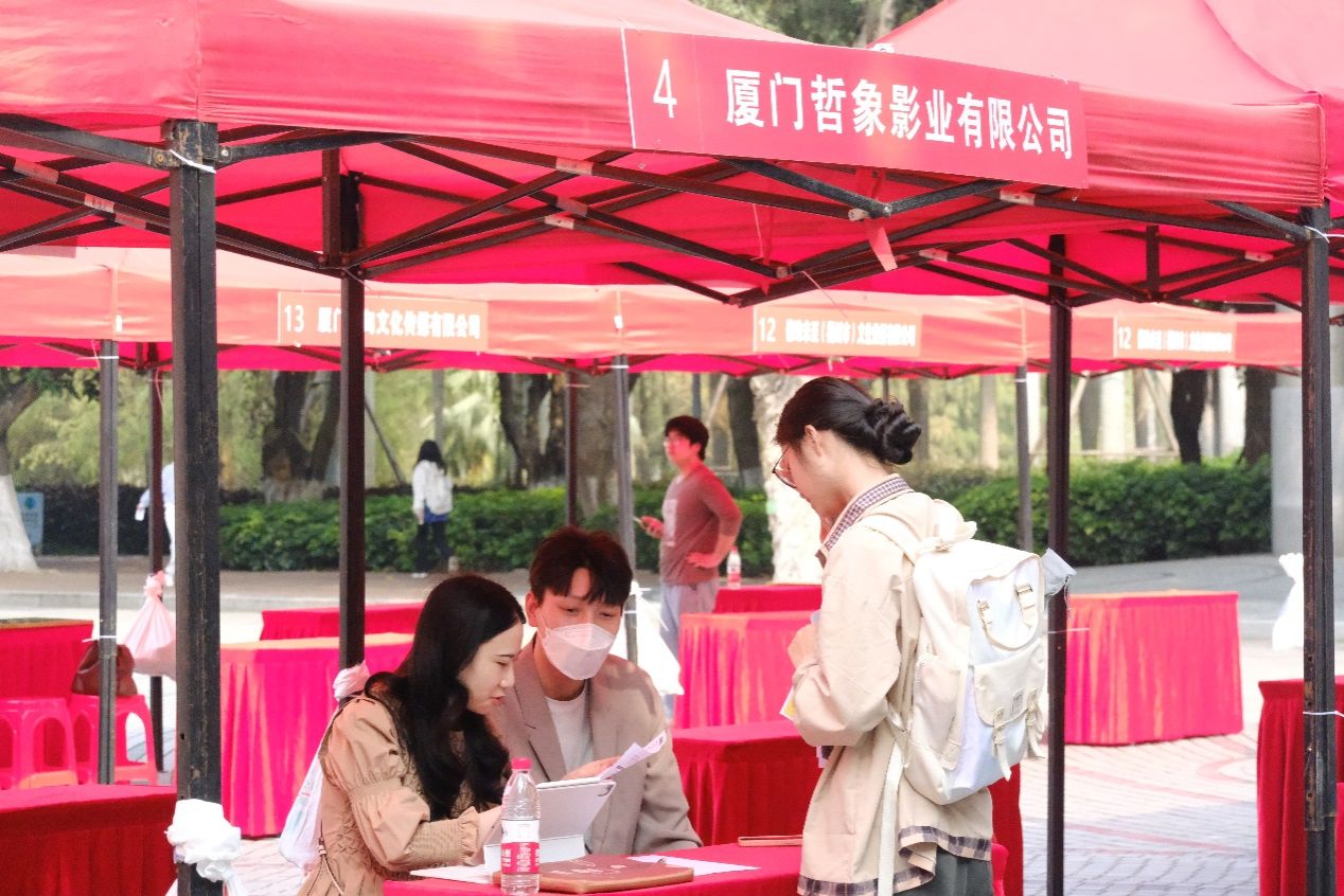 4月11日,厦门大学学生就业暨实习影视专场招聘会在三家村广场成功举办。本次招聘会由厦门大学学生就业创业指导中心主办,电影学院、新闻传播学院承办,旨在提供更多高质量的影视类求职实习机会,拓宽求职实践渠道。厦门大学学生就业创业指导中心主任、学生处副处长赵晓慧,厦门大学电影学院党委书记林公明,厦门大学新闻传播学院党委副书记黄辉、李芬芬等出席活动,厦门大学电影学院党委副书记张晴主持活动。