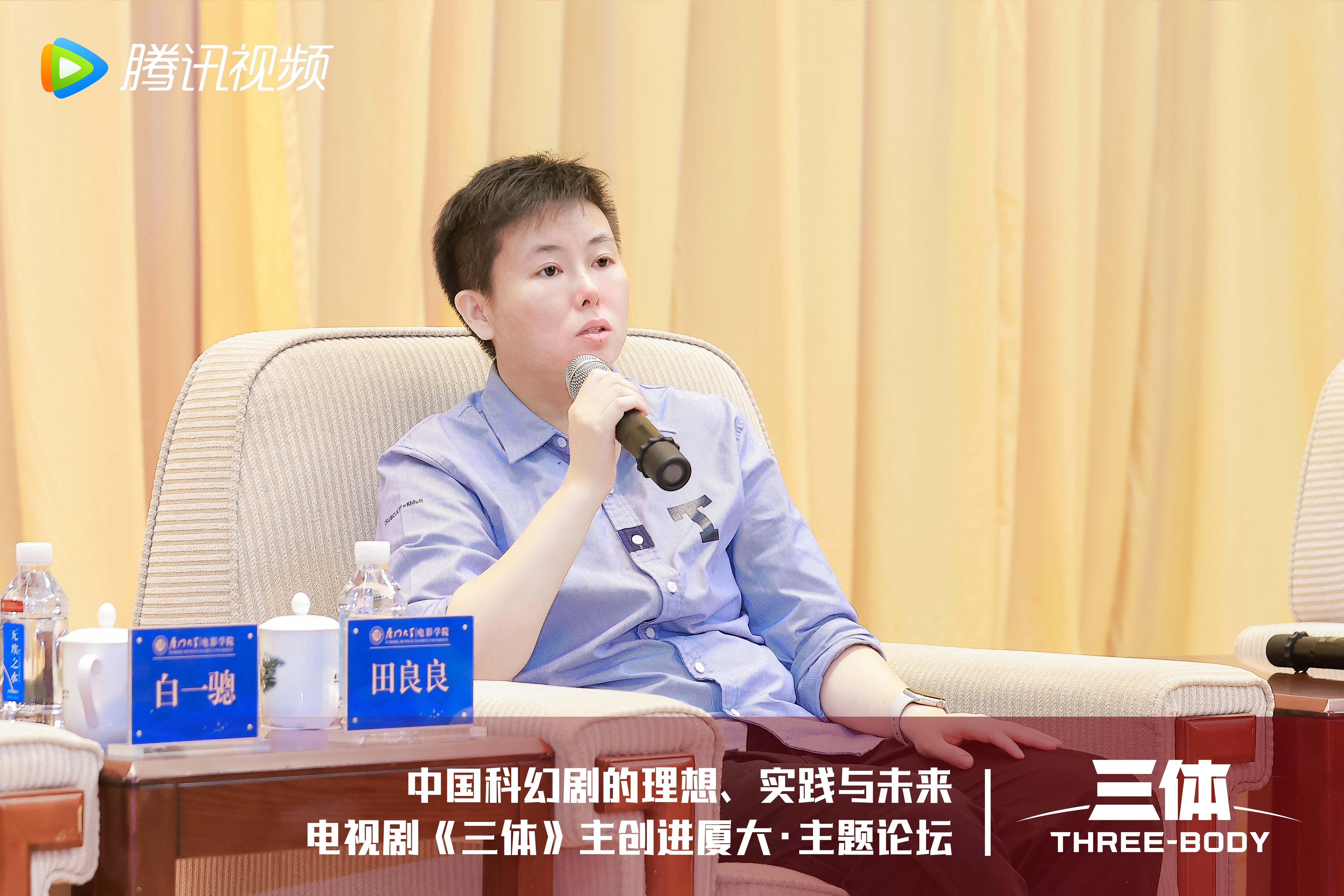 腾讯视频电视剧《三体》制片人黄星则讲述了腾讯作为出资方与电视剧制作团队的合作与协商,以及双方对于《三体》这一具有代表性的中国科幻IP的尊重。