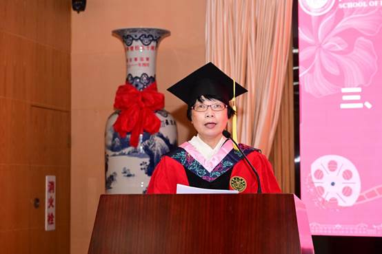 李晓红副院长(主持工作)首先致辞,她对同学顺利毕业、圆满完成校园生活表示了祝贺。2023届的毕业生见证了电影学院成立的高光时刻,他们以各种方式参与了金鸡奖长期落户厦门后丰富的学术交流活动,为电影事业和学院发展做出了积极贡献。2023年也是社会“暂停”成为过去式的一年,在全国人民的齐心协力下,各领域按下了强劲“重启键”。在同学们离开母校、迈向新的人生旅程之际,李晓红细细叮嘱到,作为“重启年”毕业的应届生,更要有按下“重启键“的心理准备。“重启”并不意味着一定能立即生效,也可能面临一些波折和困难。她鼓励同学们要有面对困难的心理准备和战胜困难的勇气,无论怎么艰难,始终不能失去信心,母校将永远是学生最温暖的港湾。