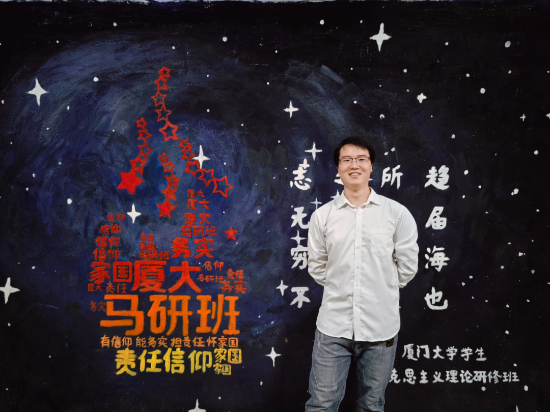 “知者行之始,行者知之成。”谈起为什么加入马研班,石筛镜认为这是一种信念的召唤。初进厦大校园,研究生的学习生活带来很多新鲜感,但除专业学习外还能收获什么,这很考验个人的选择。幸运的是,石筛镜进校之初就通过老师推荐了解到,马研班是一个专注培养学生马克思主义理论和实践能力的大集体。于是,石筛镜决定要在这里收获广博的理论知识,同时培养善于实践、敢于实践的能力。