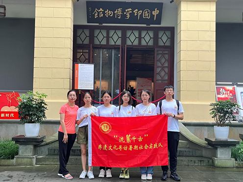 调研过程中,实践队在电影学院团委书记郑娟的带领下深入调研了海内外研究金石篆刻历史最悠久、成就最高、影响最广的国际性研究印学、书画的民间艺术团体—西泠印社及其附属地点,包括印学博物馆、西泠印社社址、西泠印社美术馆、杭州书画社、浙江省博物馆等地点,切实感受金石篆刻自身深厚的文化内涵与非遗魅力,共同重温金石篆刻发展历程,深入了解金石篆刻与教育、科技、经济等的有机融合。实地调研发现,金石篆刻从文化教育与非遗普及、科技创新与数字转型、政府扶持与市场活力、文化交流与国际合作等各方面联合打造中国文化名片,让非遗成为走向世界的文化符号。
