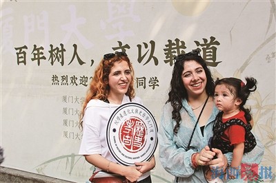 | | 来自伊朗的伊诺(左)在姐姐、外甥女陪同下到厦大报到。记者 许蔚菡 摄 |