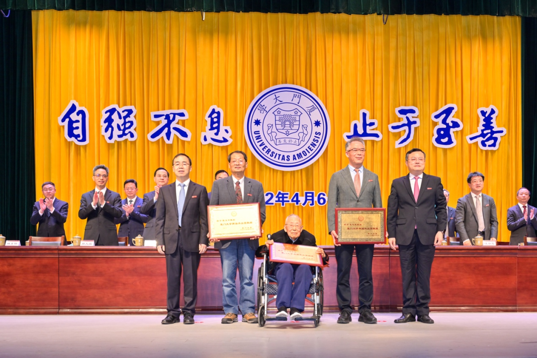 大会颁发了南强杰出贡献奖,今年奖项授予为学校发展作出突出贡献的海洋与地球学院焦念志教授、生命科学学院韩家淮教授、数学科学学院钟同德教授、历史与文化遗产学院陈支平教授。