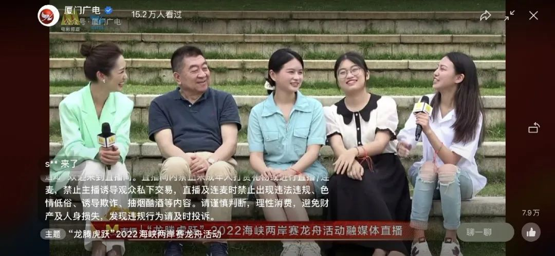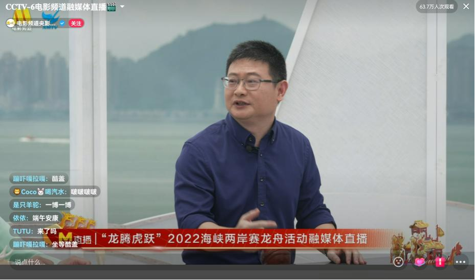 6月2日至3日,“龙腾虎跃”2022海峡两岸赛龙舟活动在厦门市举办,中宣部电影频道联合厦门广电频道推出活动融媒体全程直播。厦门大学电影学院郑国庆教授、杨惠玲教授和2018级本科生陈文晴受邀参加了现场直播访谈。