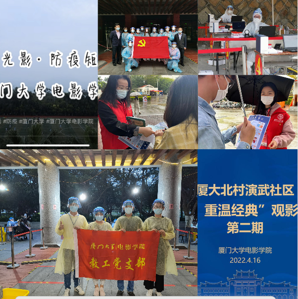 启动“战疫光影”系列工作,全力落实疫情防控责任。制作原创短视频,普及防疫知识。组织师生积极参加轮岗测温、核酸检测、疫苗接种,社区“一站式”兼职辅导员值班值守等志愿服务工作。与厦大北村演武社区共建开展“青影说”小课堂活动,培育青少年电影素质,丰富防疫生活。与师生谈心谈话,树立安全意识、聚焦问题解决,落实保密工作责任制。
