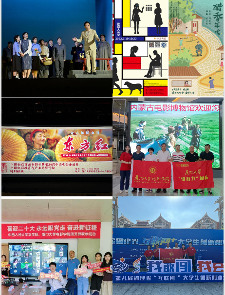 发挥“艺术+技术”学院特色,打造“技艺+”新模式,将党团教育融于学科专业、学术研究、师生实践。支持教师开设课程思政、美育与通识教育一流课程,坚定师生理想信念。推进“党史+校史”育人实践,组织师生编创校史剧《萨本栋在长汀》、“中文有戏”演出季,编排党员组织生活情景剧、“追寻习近平总书记的足迹——闽山闽水物华新”暑期社会实践情景剧。组织《东方红》《小兵张嘎》数字修复版红色电影在全国展映,开展“惜影力:守护中国影像文献的考古队”“寻访英雄的小八路”等青年红色筑梦之旅实践活动。组队参加“互联网+”“挑战杯”大学生创新创业大赛,双双斩获省赛金奖、成功晋级国赛。举办“喜迎二十大、永远跟党走、奋进新征程“主题活动,学院团委与中国人民大学文学院团委共建联学、联办微视频征集大赛,学院学子在学校主题征文活动摘得第一名、一等奖,思政教育初见成效。
