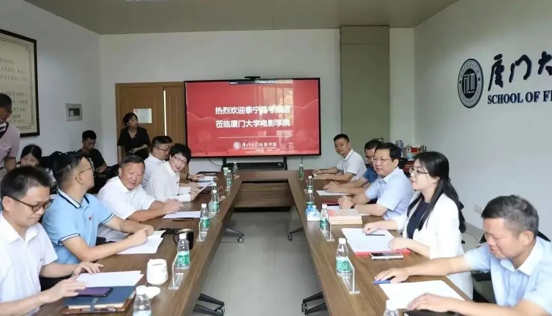 在厦门大学电影学院,县考察团与厦门大学电影学院领导班子林公明、张晴、李晓红、姚俊峰等进行了深入的座谈交流。